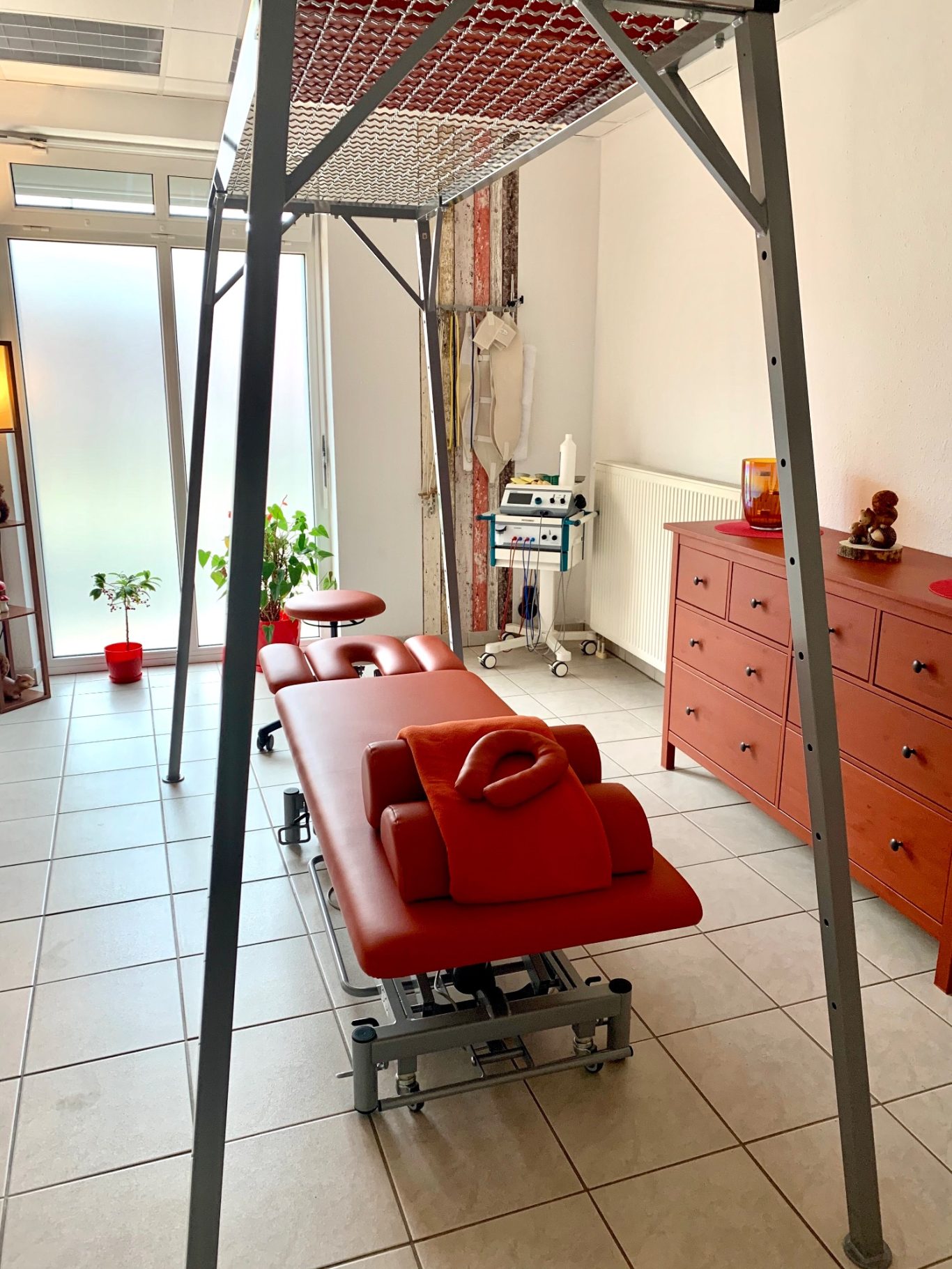 Alle Therapieräume sind mit modernen Geräten, ausreichenden Kleiderablagen und mit Sitzmöglichkeiten ausgestattet.